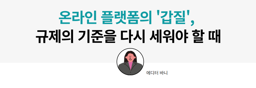 플랫폼은 개별 거래 상대방에 대한 ‘상대적 우월성’을 가진 전통기업과 달리, 거래 공간 전체의 규칙을 정할 수 있는 ‘절대적 권한’을 가진 존재입니다. 이 때문에 피해자를 일일이 특정해야 하는 기존 규제 방식으로는 현실을 반영하기 어렵습니다.