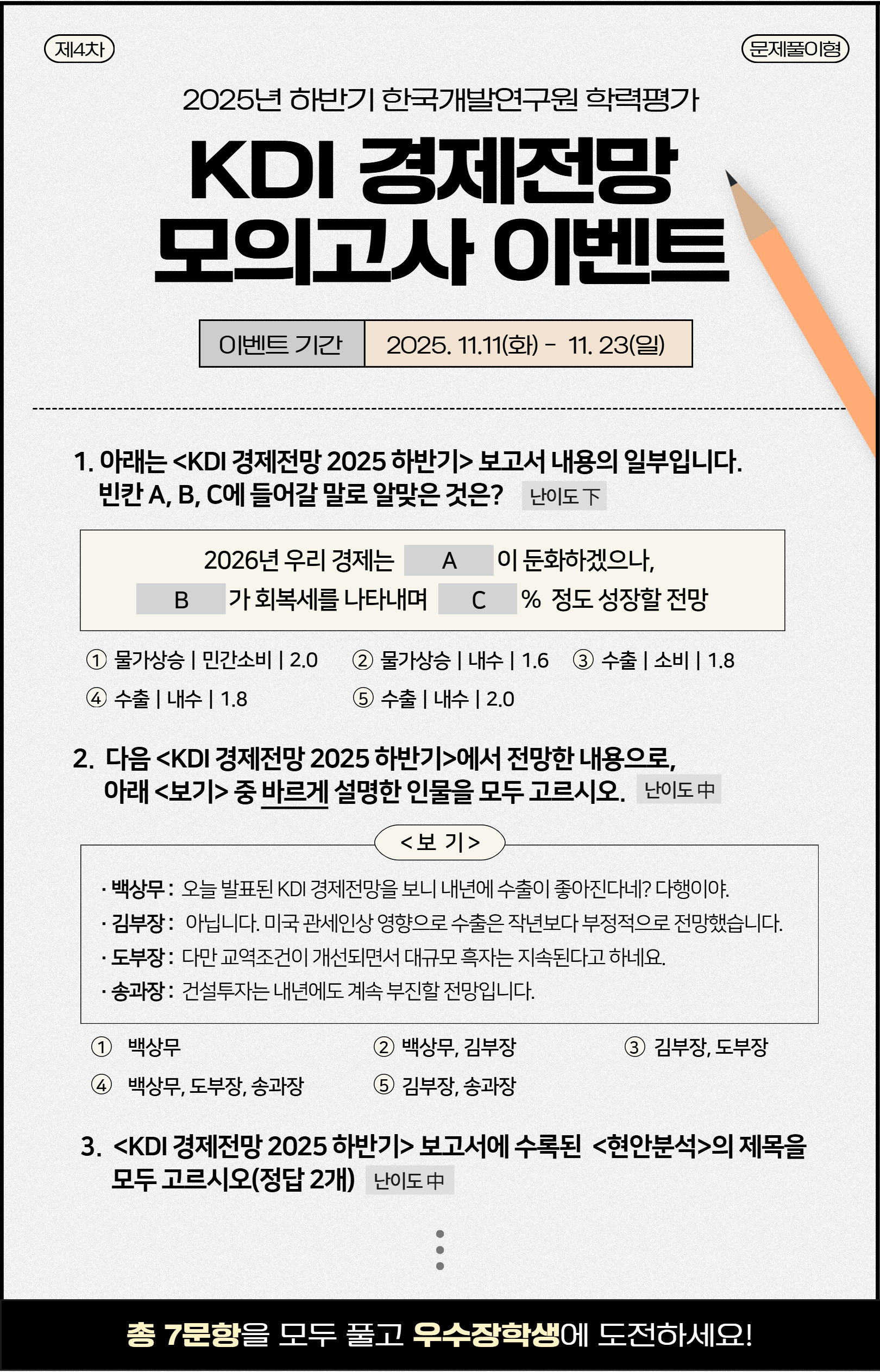 경제전망 모의고사 문제 풀고, 경제장학생👨🎓에 도전하세요!